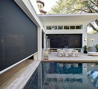 Transform patios, garages, and restaurants with versatile screening solutions that protect from the elements while enhancing your outdoor experience, all with the convenience of remote or Wi-Fi control.